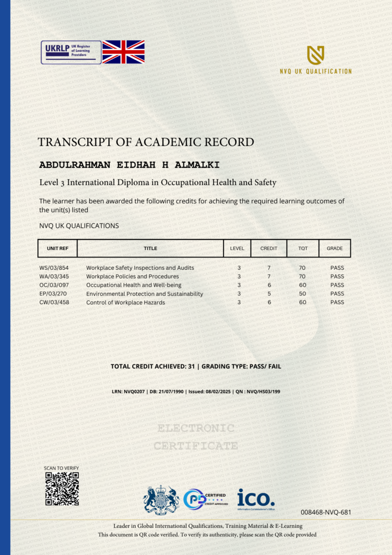 This Certificate is authentic and was issued by NVQ UK Qualification to ABDULRAHMAN EIDHAH H ALMALKI on 08 FEBRUARY 2025.