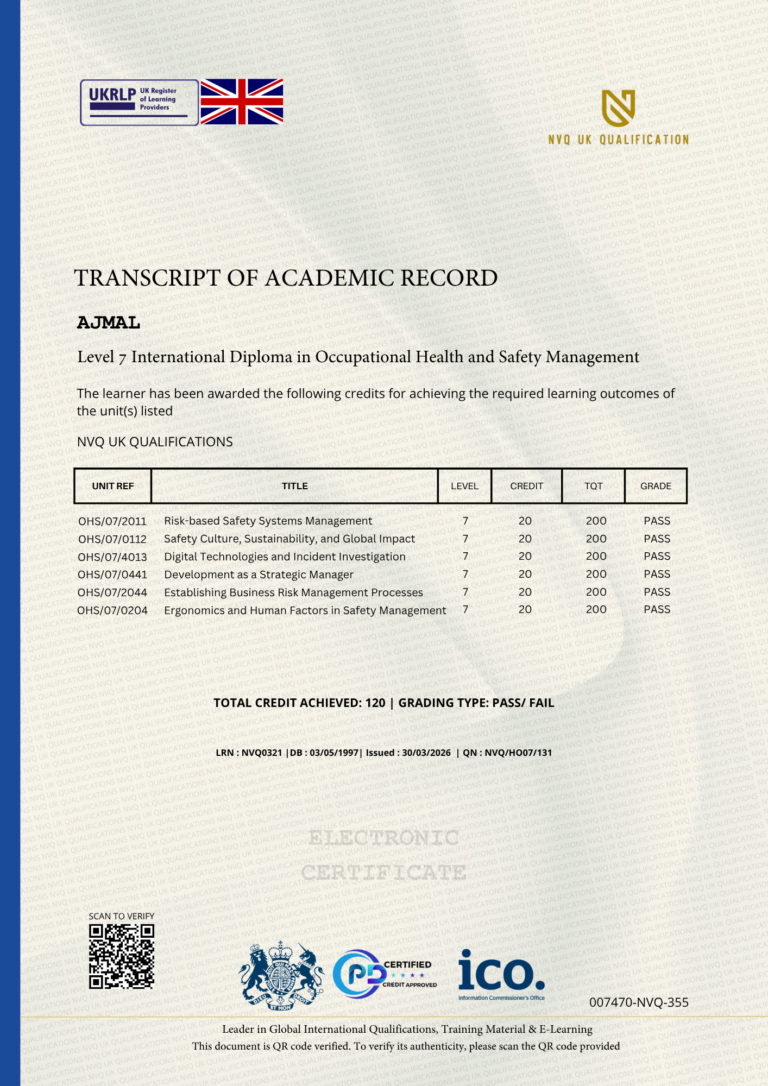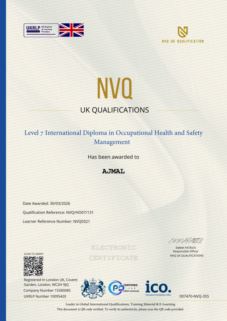 This Certificate is authentic and was issued by NVQ UK Qualification to AJMAL on 30 MARCH 2026.