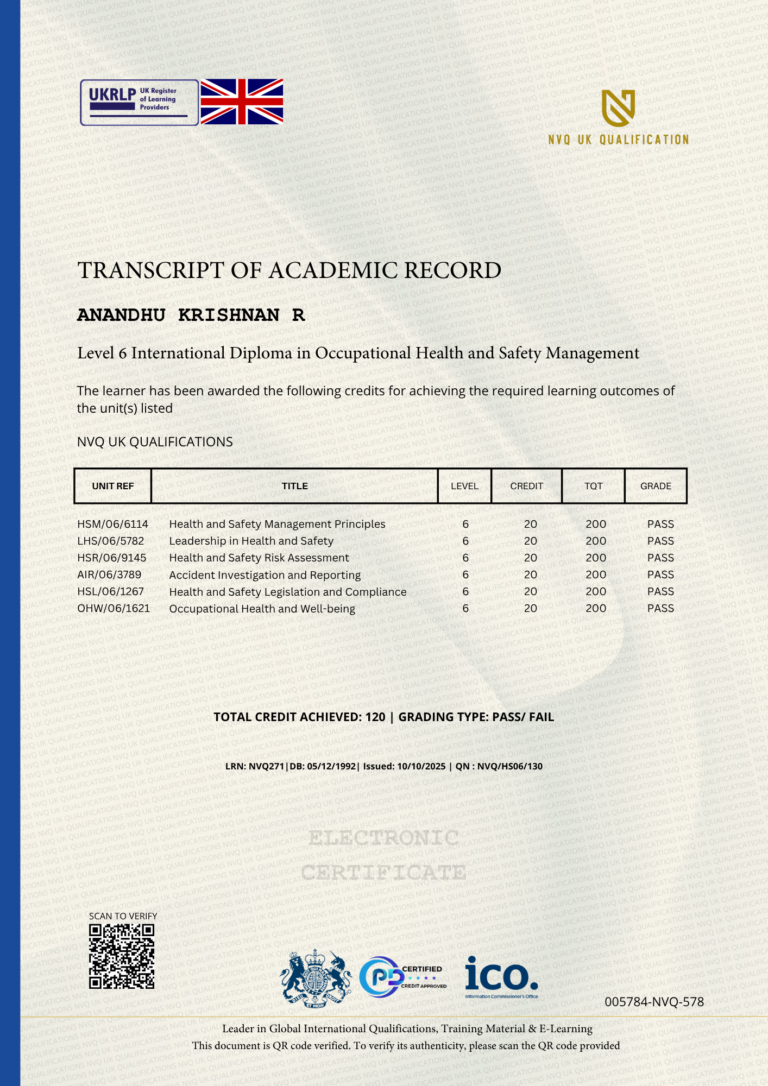This Certificate is authentic and was issued by NVQ UK Qualification to ANANDHU KRISHNAN R on 10 OCTOBERÂ 2025.