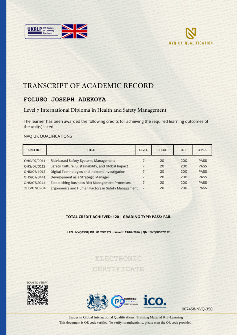 This Certificate is authentic and was issued by NVQ UK Qualification to FOLUSO JOSEPH ADEKOYA on 13 FEBRUARY 2026.