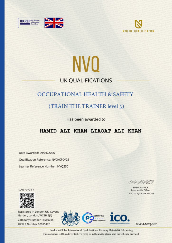 This Certificate is authentic and was issued by NVQ UK Qualification to HAMId ALI KHAN LIAQAT ALI KHAN on 29 JANUARY  2026.