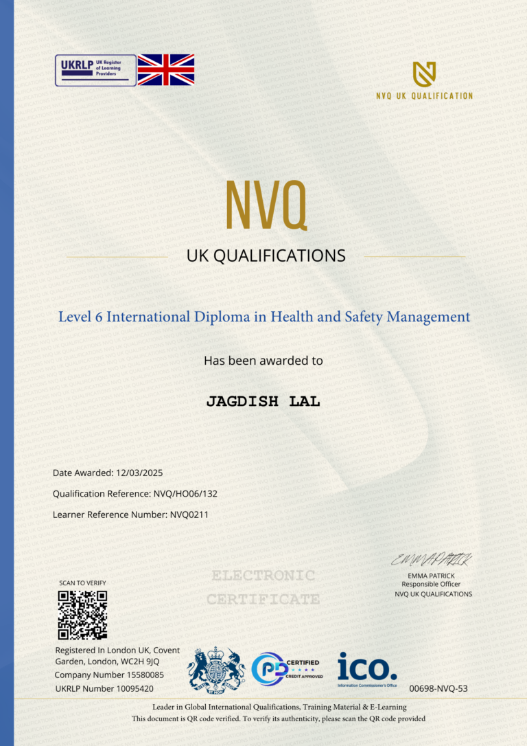 This Certificate is authentic and was issued by NVQ UK Qualification to JAGDISH LAL on 12 MARCH  2025.