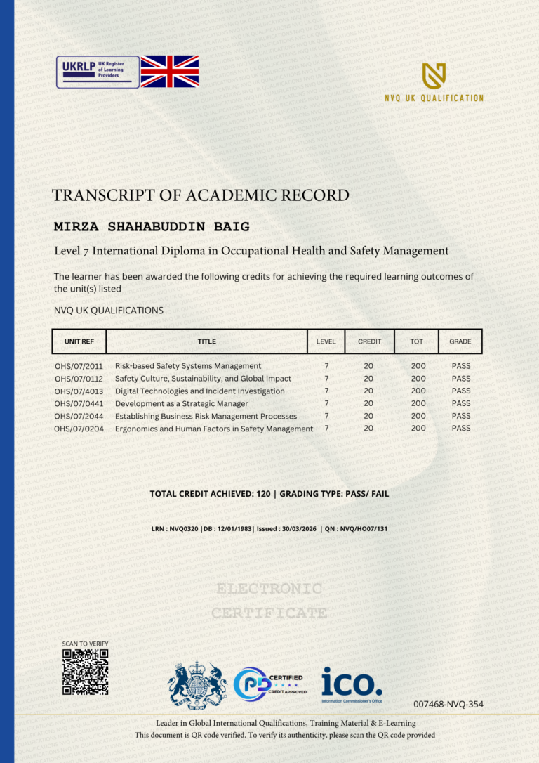 This Certificate is authentic and was issued by NVQ UK Qualification to MIRZA SHAHABUDDIN BAIG on 30 MARCH 2026.
