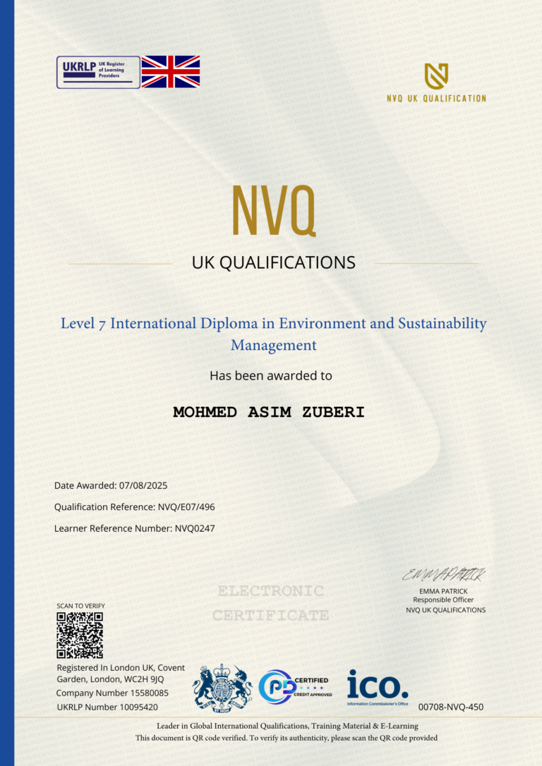 This Certificate is authentic and was issued by NVQ UK Qualification to MOHMED ASIM ZUBERI on 07 AUGUST 2025.