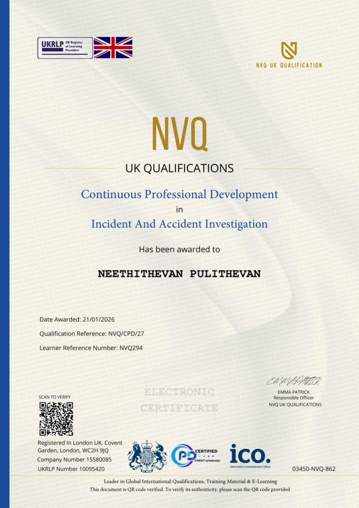 This Certificate is authentic and was issued by NVQ UK Qualification to NEETHITHEVAN PULITHEVAN  on 21 JANUARY 2026.