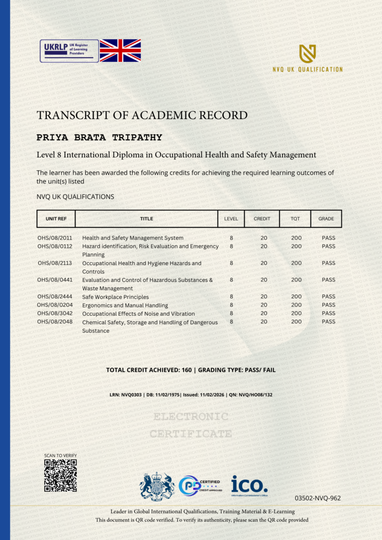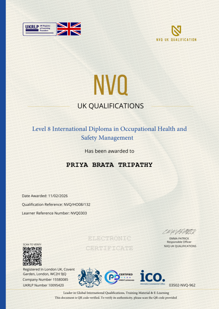 This Certificate is authentic and was issued by NVQ UK Qualification to PRIYA BRATA TRIPATHY on 11 FEBRUARY  2026.
